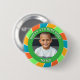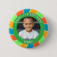 Birthday boy, Happy Birthday to you, add name, age and photo to this personalised birthday button. Retro pop art orange, blue and green background.