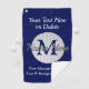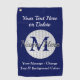 Personalised and Monogrammed Golf Towels Blue and White Golf Towel or CHANGE to Your COLORS. Type in Your Text, Name, Monogram and Message or Delete. You, or CALL Designer Linda: 239-949-9090 can CHANGE the Blue and White Personalised Golf Towel in ANY COLORS. Nice Golf Christmas Gifts for Dad, Mum and gifts for golf lovers. Practical yet special because you created these custom printed towels just for him or her.
