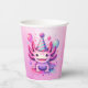 Cute anime cartoon axolotl girl's birthday personalised paper cups.