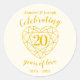Golden diamond celebrating 20 years of love anniversary stickers. Simple outline heart stone effect graphics in golden yellow and light yellow, 20th Wedding Anniversary round stickers. Customise with your own twentieth wedding anniversary details. The 20th wedding anniversary is associated with golden diamond gemstones and the heart symbolises love. Graphics and design by Sarah Trett for www.mylittleeden.com on zazzle.