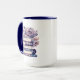Pretty pink and blue vintage pile of books with roses on the top AI art personalised cofffee mug.