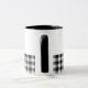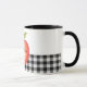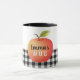 Modern, black and white buffalo plaid monogrammed mug with cute red apple and name.
