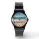 Personalised Aqua Beach Scene Photo Black Text Watch