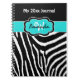 This monogrammed black and white zebra print stripes pattern note book with turquoise blue accents has template boxes for you to add your name, monogram, and other text. If you need help customising this item, please email niteowlstudio@gmail.com for assistance.