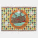 Beautiful Christmas holiday throw blanket features a cute red nosed reindeer on a background of brown, cream, aqua, orange, and mustard argyle, a strip of solid orange, and an aqua blue centre with white polka dots and snowflakes. Easily customise this holiday throw blanket with your name!