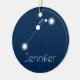 Personalised Aries Zodiac Constellation Ornament. Featuring Aries' Constellation on a Navy Background, this Personalised Aries Ornament Makes a Perfect Addition to Your Christmas Tree. Aries is the First Sign of the Zodiac and Includes All individuals Born from March 21st - April 19th. Aries' Symbol is The Ram. Aries' Personality Traits are Adventurous, Bold, Confident, Optimistic and Impatient. Aries' Birthstone is the Diamond and Aries' Ruling Planet is Mars. Background Colour and Text can be customised