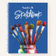 Sketchbook notebook displays a colourful watercolor illustration of an artist’s paintbrushes in a bottle. A fun design on this customisable sketchbook. It would make a wonderful personalised gift as the name is editable. “Sketchbook” is written in an elegant script typography on a cool blue background.
