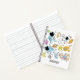 Cute cartoon style astronaut in outer space personalised notebook for back to school. Astronaut on the back with turquoise background.
