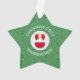 The red and white Austrian flag is worn by an angel that flies in a white circle of squiggly squares. The background on this star shaped ornament is green squiggly squares for your Christmas decor this holiday season. Personalise by adding a name. Customise by adding a year. If you prefer, just add your own text.