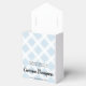 Presentation really is everything. This adorable Christening favour box complete with a bow is designed with circle patterns, a faux gold cross and the added touch of personalisation for your baby boy's name and event date. The blue is soft and modern but you can easily change the background blue using the customisation tool.