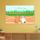 Add your new baby boy's name to this artwork. A little baby boy with baseball bat, glove and ball sitting next to a big teddy bear on a baseball field.