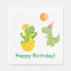 A paper napkin with two baby dinosaurs. You can edit or remove the text. Perfect for parties, campers and rv'ers. Matching cups and plates available.