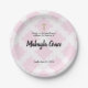 Personalised Baby Girl Pink Baptism gold cross Paper Plate