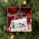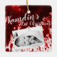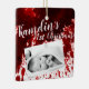 at christmass as a hanging decration for the chritmass tree.. its white porcline or cramic but very well made with added photo on one side.. also has a lovley red bag to keep it in.. execlent printed text in bold and black stands out well aganst the blue background of the photo.