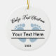 Personalise your Christmas tree with this lovely Baby’s First Christmas keepsake ornament. A fun Christmas design with a baby feet silhouette in blue for boys. Personalise this ornament with the baby’s name or any text you choose, along with the appropriate year.