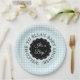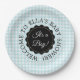 Personalise these cute baby boy, "its a boy" baby shower small cake plates, with blue gingham chequered stripes and black label on the inside that says, "Its a boy."