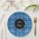 Personalise these cute baby boy, "its a boy" baby shower small cake plates, with blue plaid chequered stripes and black label on the inside that says, "Its a boy."