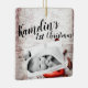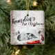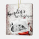 at christmass as a hanging decration for the chritmass tree.. its white porcline or cramic but very well made with added photo on one side.. also has a lovley red bag to keep it in.. execlent printed text in bold and black stands out well aganst the blue background of the photo.