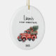 Personalise your Christmas tree with this lovely baby’s first Christmas keepsake ornament. A fun Christmas design with a Christmas tree loaded into a classic pickup truck. Personalise with the baby’s first name and year.