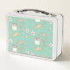 Make lunchtime extra fun and personal with this custom metal lunchbox featuring a vibrant back-to-school design! Adorned with colourful pencils, smiley faces, stars, notebook paper, flowers, and apples, this cheerful design is perfect for students who want to carry a bit of joy with their meals.