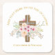 Personalised Baptism & Christening Floral Cross Square Paper Coaster