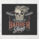 Personalised Barber Shop Hipster Skull and Razors, featuring bearded hipster skeleton and straight razor design. Customise with your Name or Custom Text.