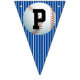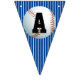 Baseball themed Happy Birthday bunting with striped background and editable so you can add name, available in other colours and other sports