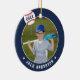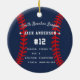 Commemorate an awesome season for your favourite baseball player with this cool custom ornament in a navy blue, red, and white colorway. Personalise the front with the player's photo, name and the year, and add more details to the back, including the team or league name, season, age, position, and coach name.