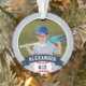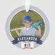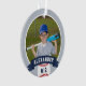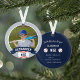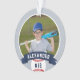 Commemorate an awesome season for your favourite baseball player with this cool custom ornament in a navy blue and grey colorway. Personalise the front with the player's photo, name and jersey number, and add more details to the back, including the team or league name, season, age, position, and coach name.