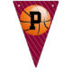 Basketball themed Happy Birthday bunting with striped background and editable so you can add name, available in other colours and other sports