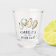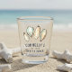 This coastal cool shot glass for your beach house, patio, or salty abode features soft cream and aqua watercolor oyster and pearl illustrations. Personalise with a family name and year established along the bottom, along with "Oyster Shack" or your choice of personalisation.