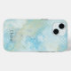 Phone case featuring a grunge beach inspired chequered pattern in turquoise blue, off white and pale green, with your own custom text or monogram (optional). You can rotate or scale the design if you like!