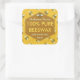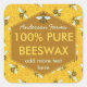 These sweet bee pattern beeswax label stickers show honeybees over a light, bright honeycomb background. The yellow and black bees have gossamer white-blue wings. They're crawling over the honeycomb inside their beehive. On the central six-sided honeycomb shape, you can add the name of your farm and more text. The words "100% PURE BEESWAX" can also be customised.
