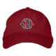 Personalised monogrammed hats in beige and maroon, change the monogram colour and hat colour to design your own baseball cap.