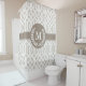 Elevate your bathroom décor with this elegant beige and mocha shower curtain featuring a Moroccan-inspired quatrefoil pattern. The intricate design and customisable initial create a unique and stylish accent for any bathroom.