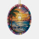 A Personalised Travel Souvenir Ornament designed to celebrate your unforgettable trip. Whether you went for work, enjoyed a romantic getaway, or took part in a school exchange program, this ornament commemorates a special moment you’ll always cherish and want to remember for years to come. This ornament features a stained-glass-style design of a beach with waves at sunset, creating a truly eye-catching piece.