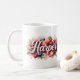 Start your day with a touch of sweetness! This personalised mug features the name Harper in soft 3D script, surrounded by vibrant watercolor berries and delicate floral accents. Juicy strawberries, blueberries, raspberries, and gentle pink blossoms form a cheerful, nature-inspired design — perfect for morning coffee, tea, or as a unique gift.