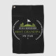 Elegant black and white golf towel. Design features of trendy golf icon, best grandpa by par typography script and name in block capital letters . Perfect gift for grandfather.