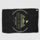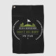 Elegant black and white golf towel. Design features of trendy golf icon, best hubby by par typography script and name in block capital letters . Perfect gift for husband.