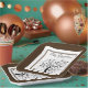 A Family Plate with a stencil-art black tree holding 20 names. You can fit 20 family members' names on these plates This would be perfect for Family Reunion parties. Your family will love it and will have fun finding their name.
