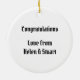 A biker motorcycle wedding anniversary ceramic hanging decoration which can be personalised with both the couple's names and how many years they have been married, with congratulations or a personalised message of your choice on the back.