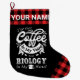 Personalised Biology Coffee In My Veins Plaid Large Christmas Stocking
