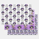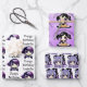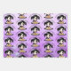 Cute purple and black birthday party gift wrap with anime girls gaming and pizza party themed.