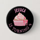 Personalised Birthday girl Pink Cupcake age and name birthday button.