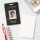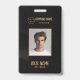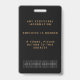 Black and gold elegant badge with template fields for employee name, photo, company name/title and barcode. You can customise the text size, font and colour to suit your own personal preference.