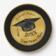 Personalised Black and Gold Graduation Plates with 3 text box templates for School Name, Graduation Year and Graduate's Name or Your Text or Delete it. Call Designer Linda to Change the Gold background colours to your school colours. You, or Linda, can change the Black rim and customisable text colours to ANY COLORS.