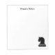 Personalised black and white chess writing memo notepads for chess lovers, grand master and other players of the game. Custom note pads with knight icon and name. Personalised memo pad design for home, club, school or office. School / office supplies for men, women and kids. Customisable background colour. Cute gift idea for dad, teacher, mum, friend, coach, etc. Also available on stationery paper.