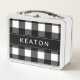Put your name on this cute large print gingham metal lunch box then look cute when you use it for lunch, display or storage.