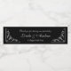 Classic retro look swirl and flourish wedding party favour water bottle labels. Custom elegant black and white wrap around waterbottle stickers with swirly corner border. Personalised DIY template with stylish script calligraphy typography. Chic vintage look design with name of bride and groom plus date of marriage. Use spring water as classy table decoration or thank you favour for guests at the reception party. Customisable background colour to match your theme. Thank you for sharing our special day. Also nice for fancy wedding rehearsal dinner, engagement, bachelorette, anniversary, bridal shower etc. Can also be used for making your own trendy beer and wine bottles. Luxury party supplies and luxurious accessories for your special marriage day.