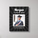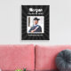Modern black wrapped canvas wall art will showcase your graduate for years to come. Design features a square photo of the grad framed in white with simple and classic first name, class year, and school name wording that can be personalised. Includes a subtle starburst pattern. Black background colour can be modified to coordinate with school or photo colours.